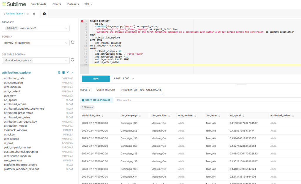 Sublime changes that by giving analysts full flexibility to define, combine and explore customer segments in any way they need. You can filter users by product category, acquisition channel, campaign, device, discount usage, first vs. repeat purchase – and measure how each segment performs in terms of LTV, CAC, retention, and contribution margin.