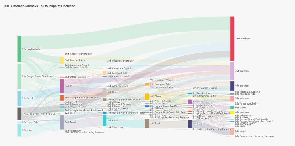 With Sublime, you gain a clear, user-level view of what happens before, during and after a conversion – including the contribution of each paid campaign to repeat purchases, retention, and LTV. You can finally distinguish between campaigns that bring in one-time buyers versus loyal, high-value customers. Meta and TikTok ads, in particular, are often undervalued in standard analytics because of cross-device behavior and privacy limitations – Sublime fills in those blind spots.