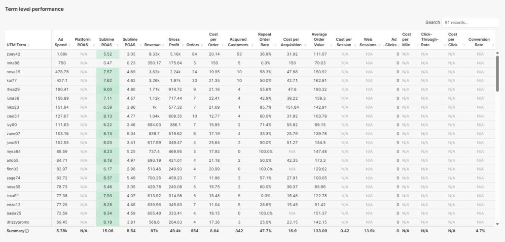 With full-funnel visibility, you can finally see which creators drive valuable, returning customers and which ones deliver short-term engagement that doesn’t convert. Sublime tracks every touchpoint, including deep links, in-app browsers and multi-device paths, so traffic is fully stitched into the conversion journey.