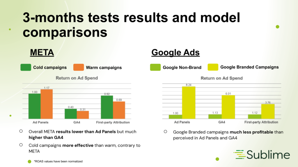 The results of the three-month test focused on evaluating the effectiveness of the first-party attribution model proposed by Sublime Analytics Platform in optimizing Natu.Care ‘s marketing spend. Here are more details about the results: