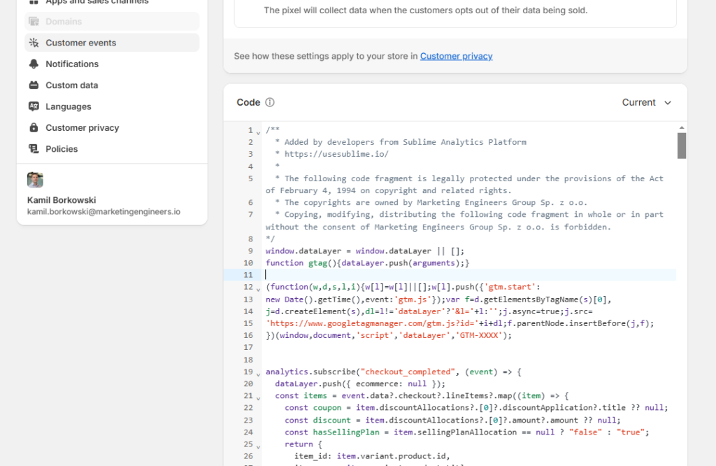 However, the introduction of so-called Checkout Extensibility has brought significant consequences for tracking capabilities. Stores lost the ability to embed popular tools like Google Tag Manager or Google Analytics directly into their page code, leading to confusion and operational problems. This sudden change halted the tracking of checkout steps and purchases, significantly impacting ongoing marketing campaigns.